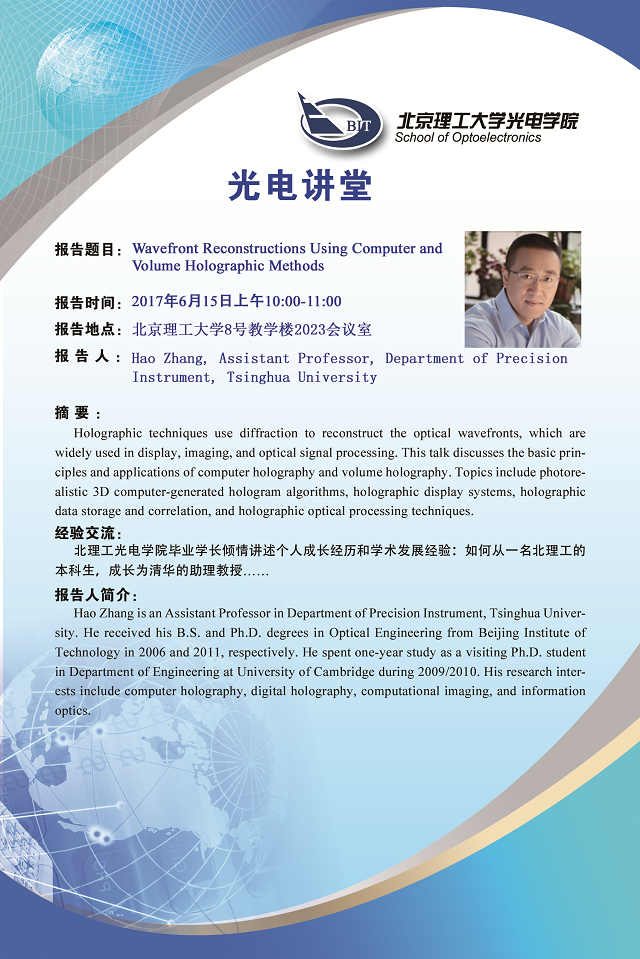 【光电讲堂】6月15日讲座预告