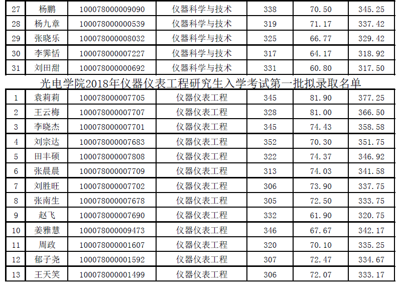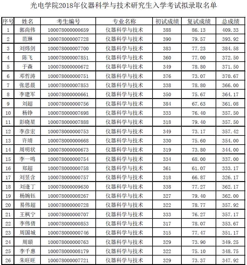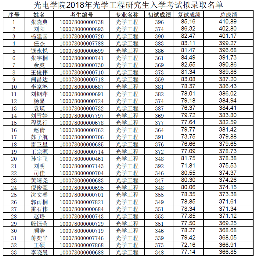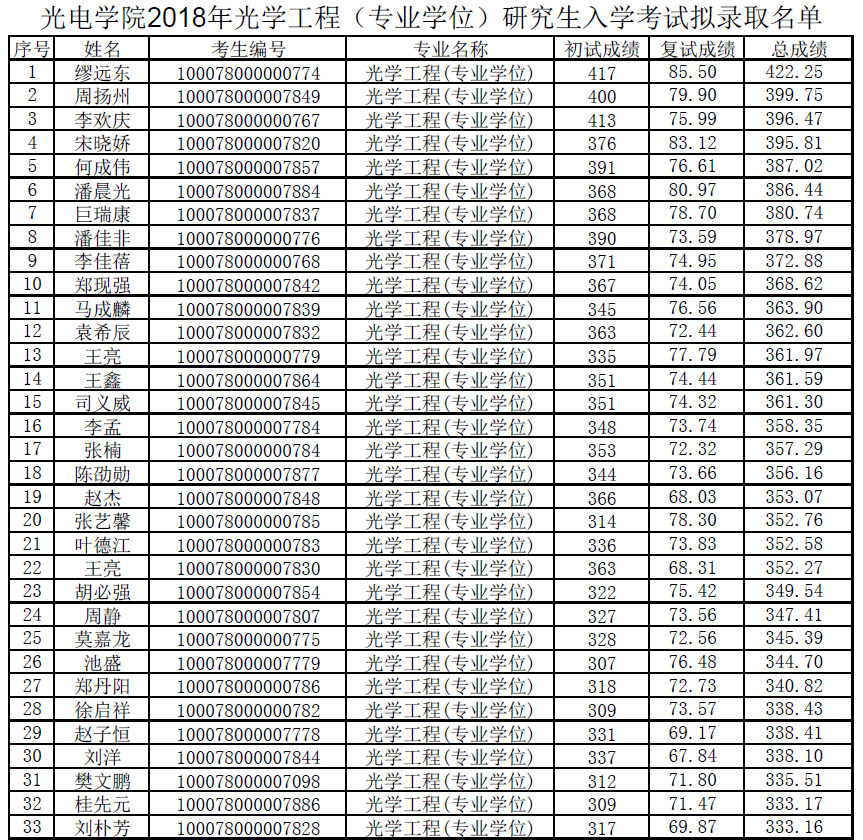mg4355电子线路2018年研究生入学考试拟录取名单
