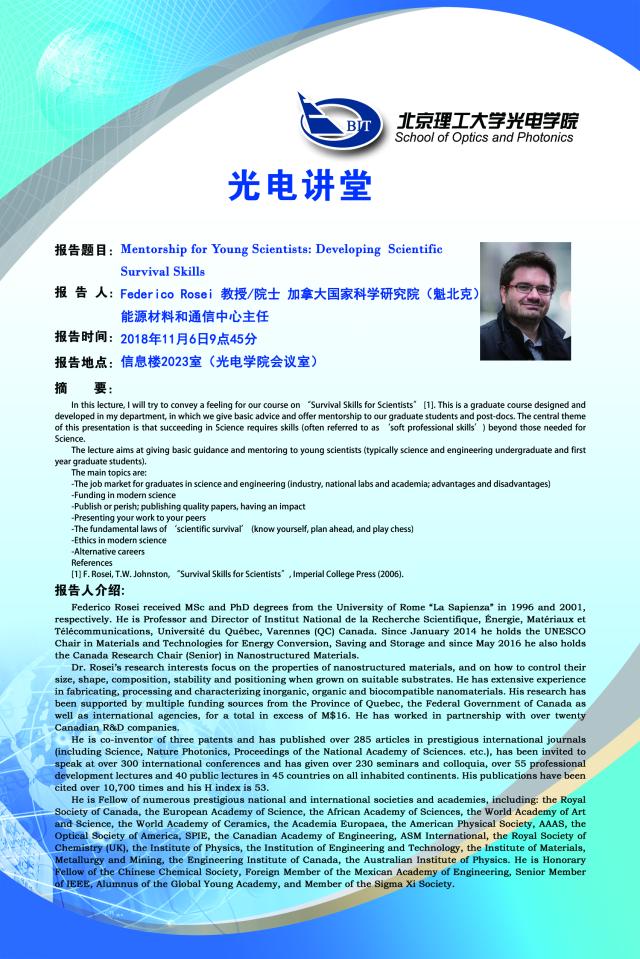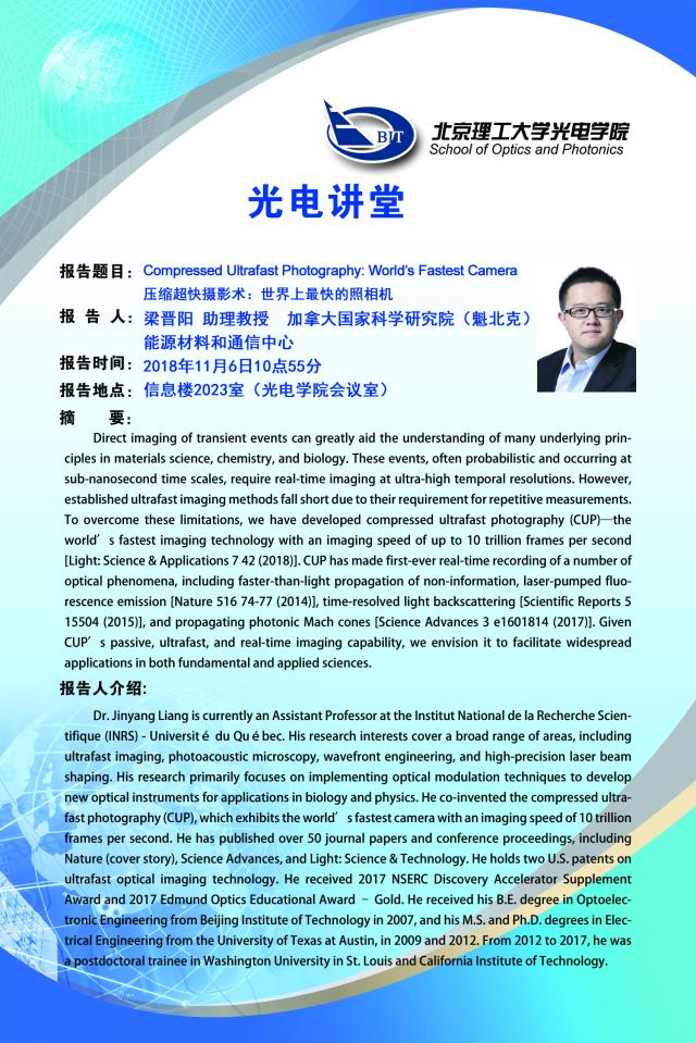 【光电讲堂】11月6日讲座预告