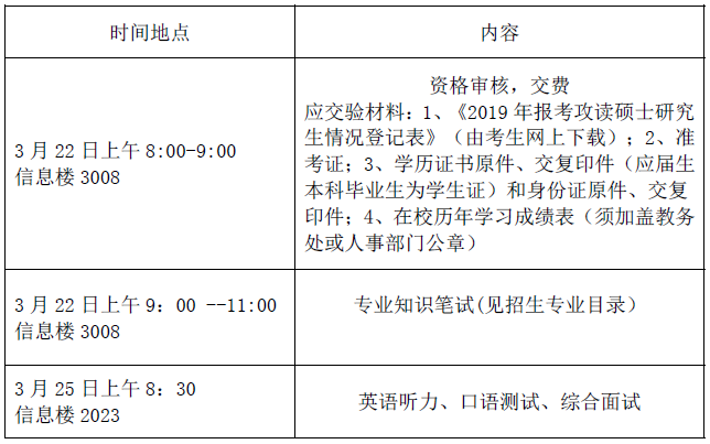 复试时间、地点安排如下: