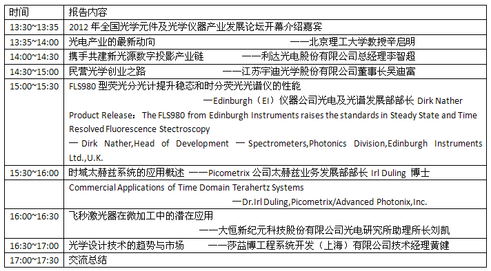 1、2012年全国光学元件及光学仪器产业发展论坛
