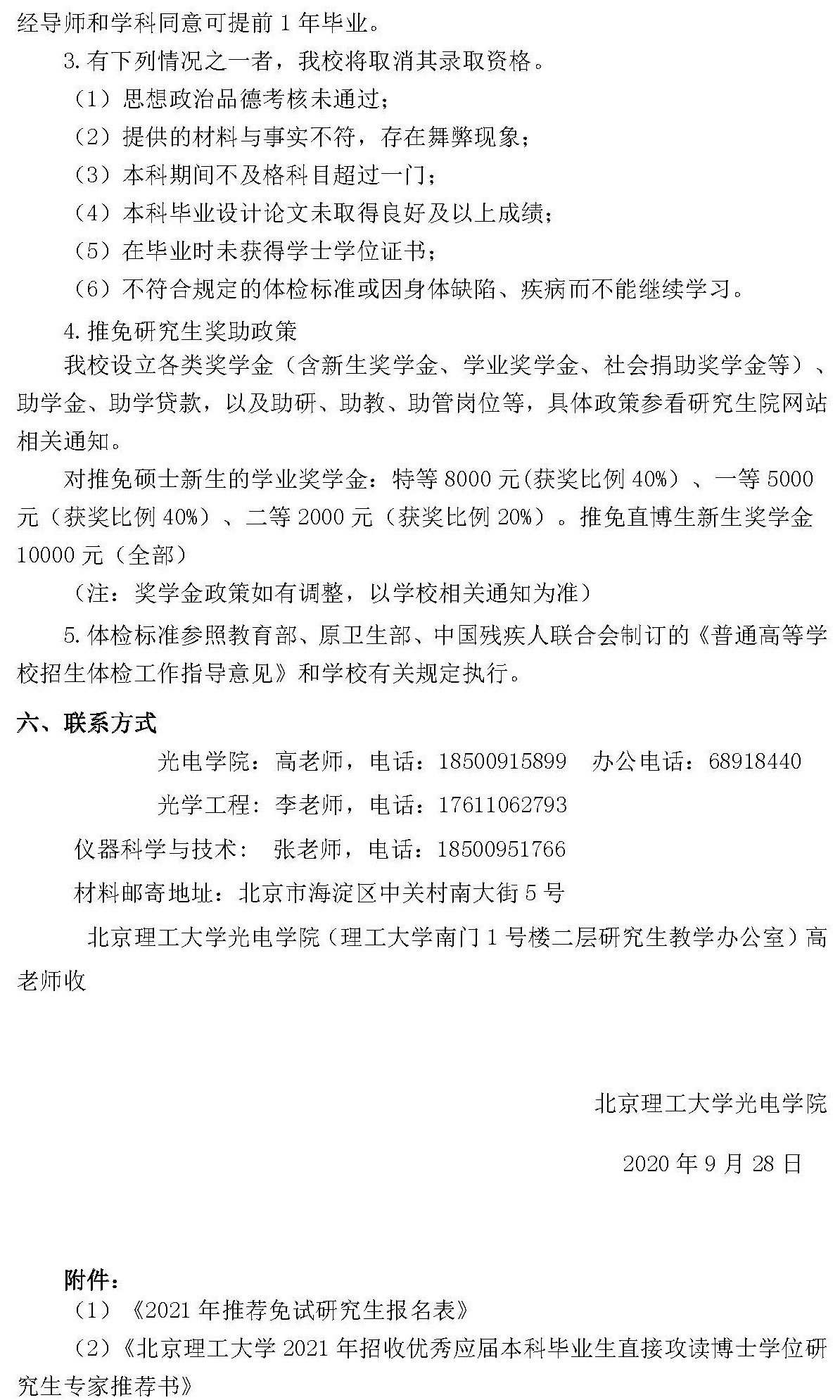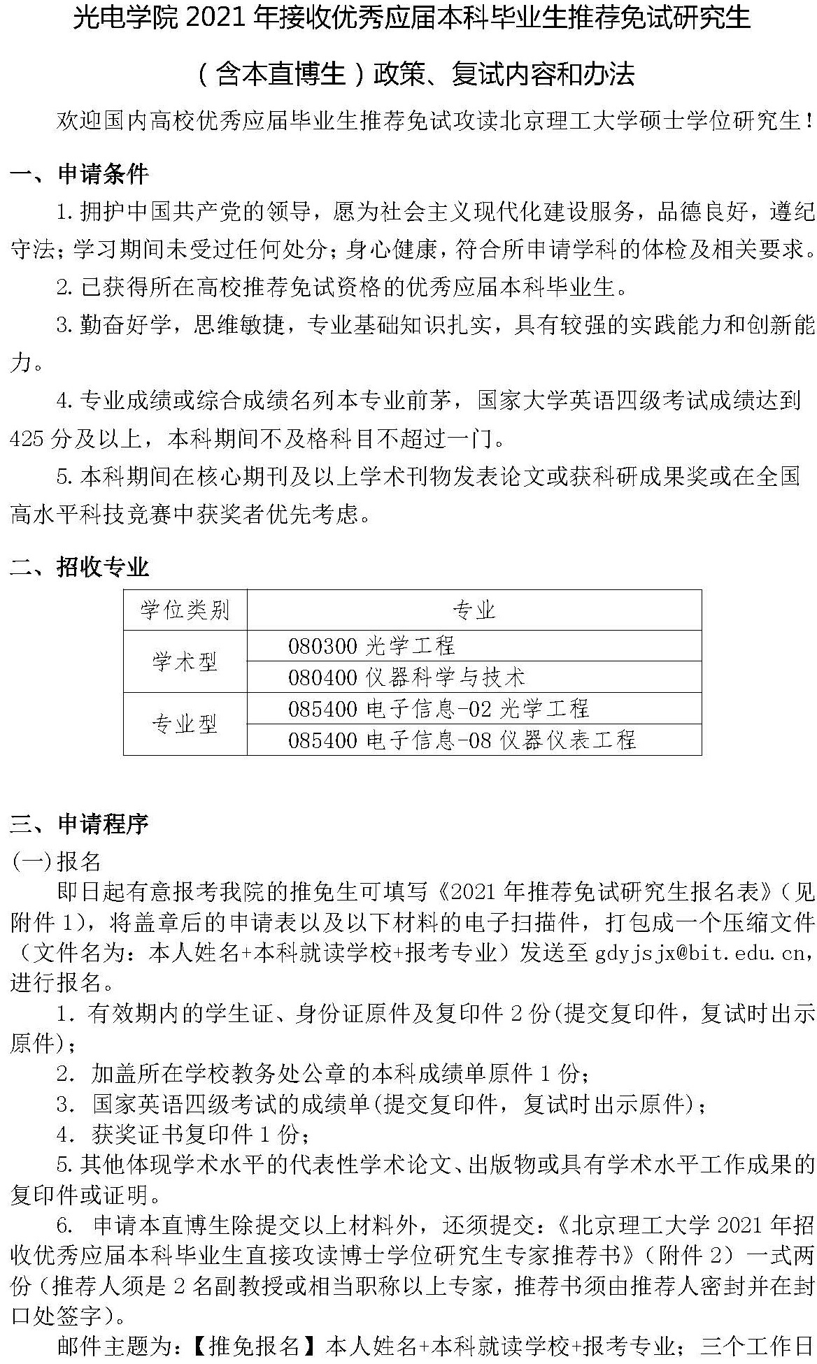 通知公告 通知公告 首页» 通知公告» 学院通知 mg4355电子线路2021 年接收优秀应届本科毕业生推荐免试研究生 (含本直博生)政策、复试内容和办法 发布日期:2020-09-30 阅读次数: 附件: 2021 年推荐免试研究生报名表.docx mg4355电子线路招收优秀应届本科毕业生直接攻读博士学位研究生专家推荐书.doc 分享到: