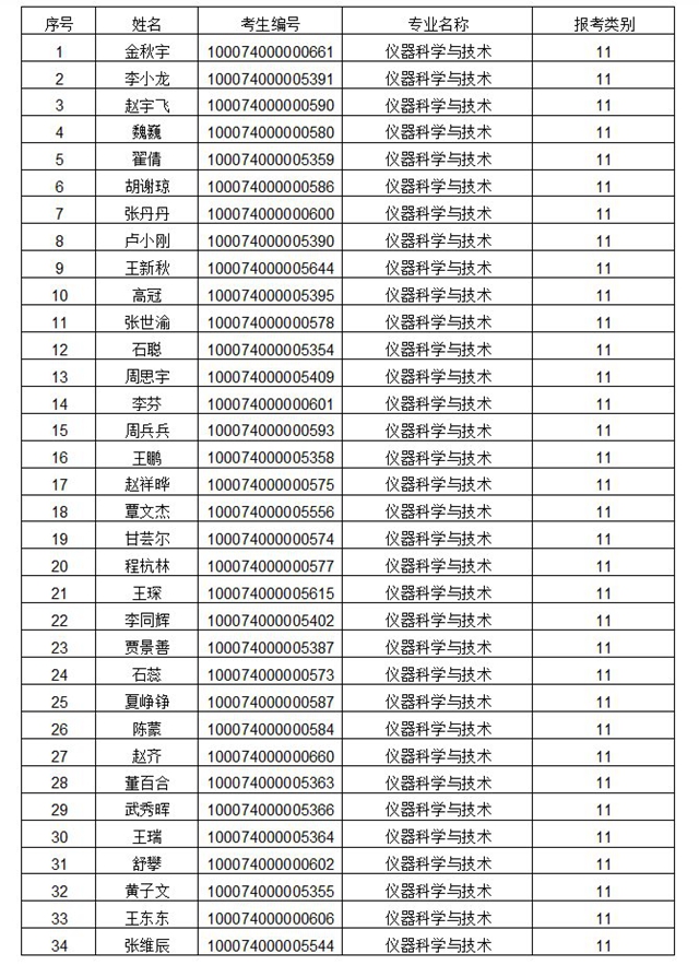 仪器科学与技术专业复试名单