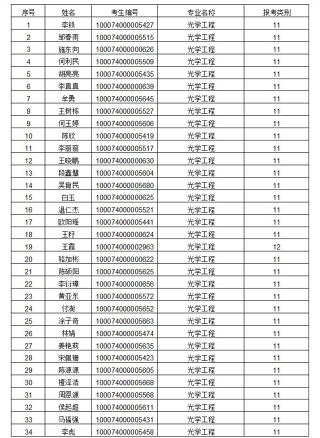 光学工程专业复试名单