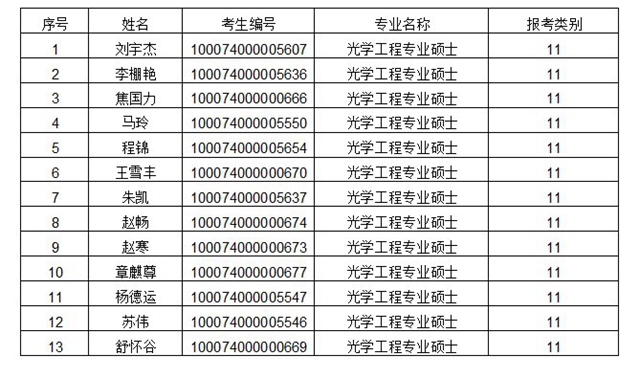 光学工程专业硕士复试名单