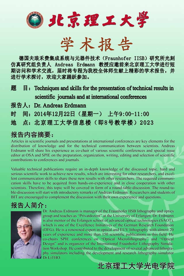 【光电讲堂】讲座预告