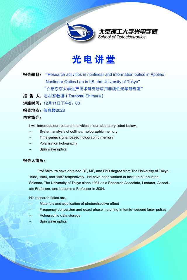 【光电讲堂】志村努教授讲座