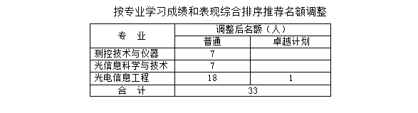 根据教务处给mg4355电子线路下达的保研指标,我学院根据各专业学生人数和具体情况,于9月15日分配了各专业的保研指标并公示。9月18日,根据学生报名情况和学校政策, “光信息科学与技术”专业申请按照”专业学习成绩和表现综合排序”方式保研、并满足学校“保持在本专业成绩排序前25%”条件的人数为7人。因此通过重新计算比例,调整各专业保研名额如下: