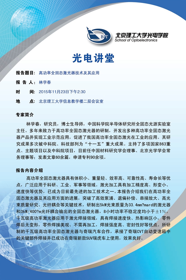 【光电讲堂】11月23日讲座预告
